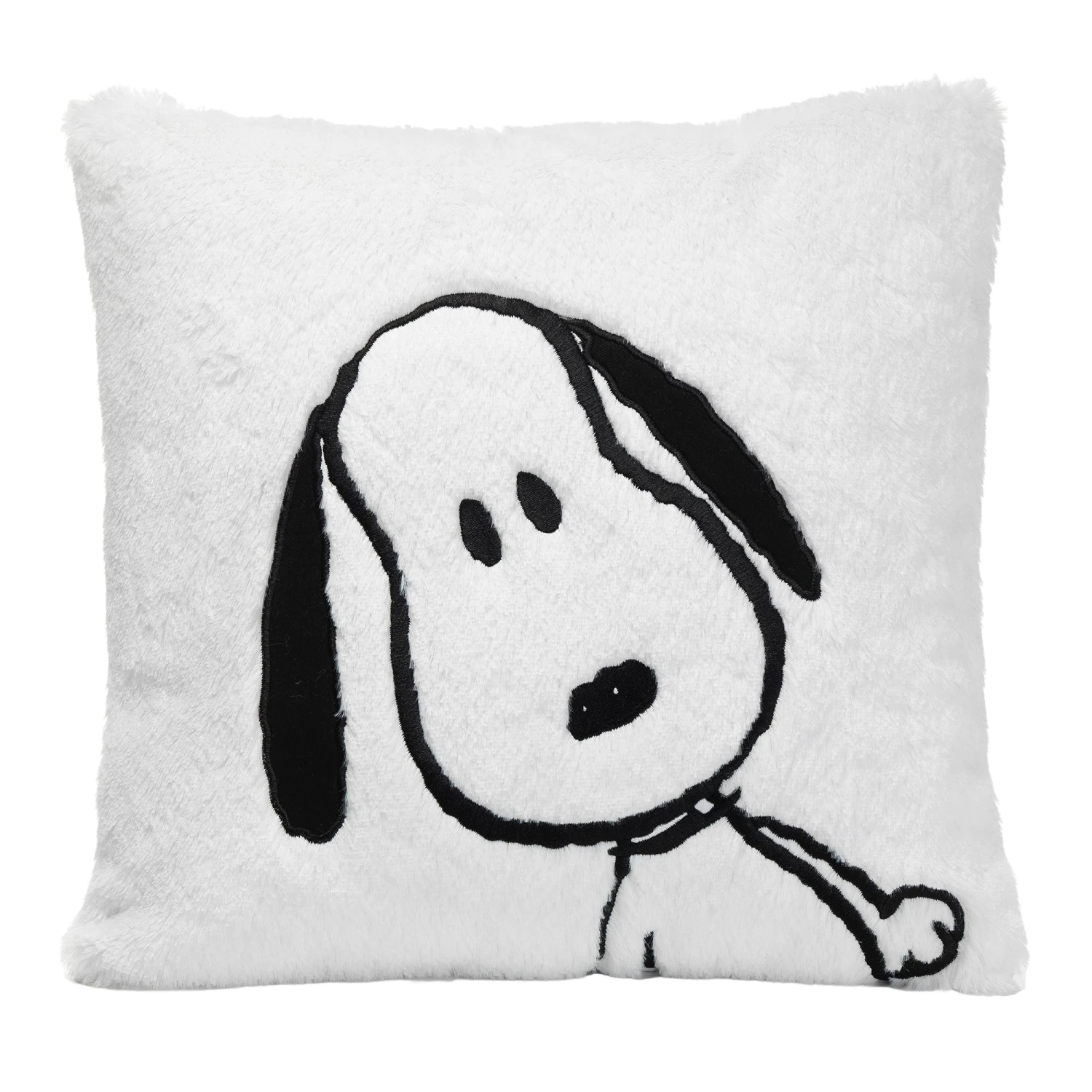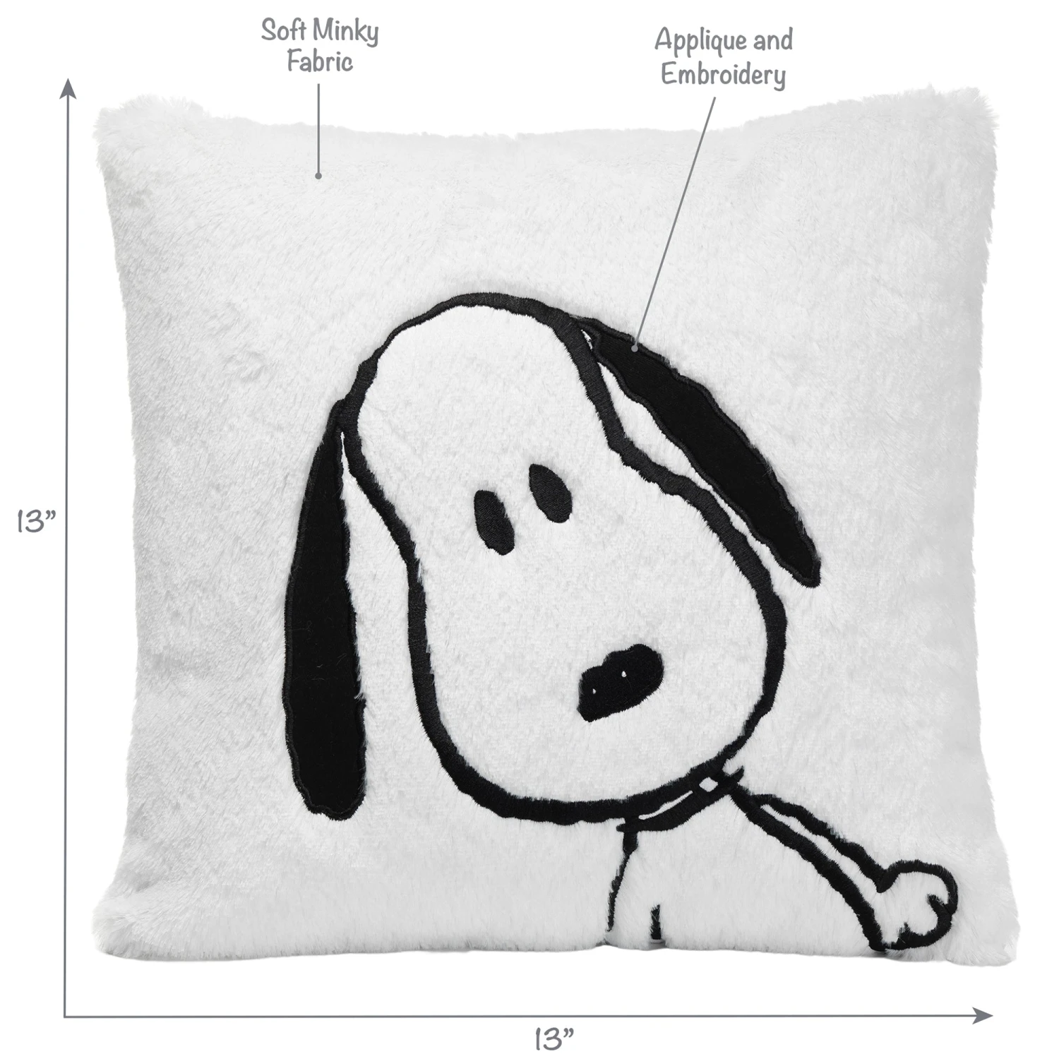 This charming soft and cozy keepsake pillow features our favorite canine/dog, Snoopy. The front fabric is a luxury white minky. An expertly embroidered Snoopy face is featured with his two big floppy ears. The back of the pillow is white cotton twill and has an opening for easy care. This pillow is 13 inches by 13 inches and makes a great baby shower gift or welcome home baby gift. SKU: 890003, UPC: 084122013728.