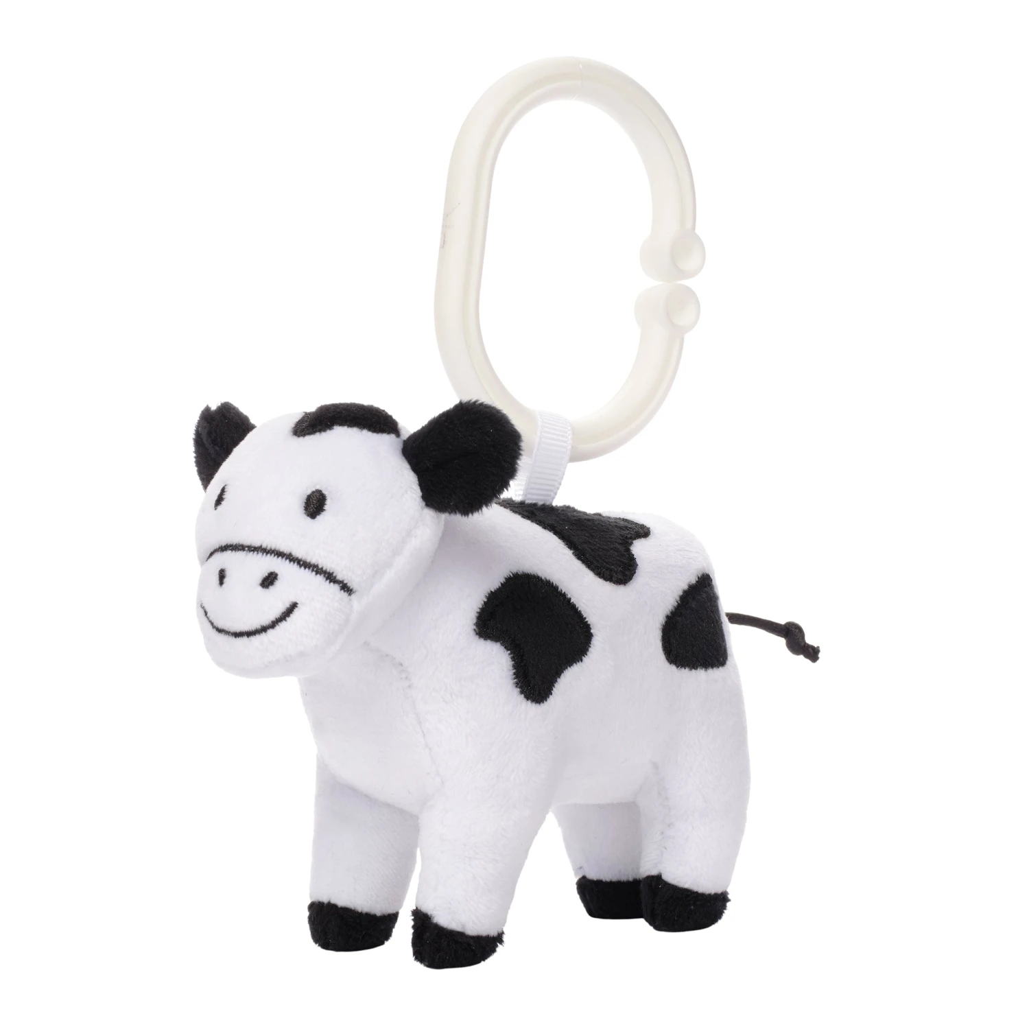 Bring home a bundle of barnyard joy with this adorable 3-piece infant gift set. Includes an incredibly soft fleece sheep security blanket / lovey for gentle snuggles. Made in a light taupe colored velour with the top of his head in a light gray faux shearling. He has black velour inner ears with an embroidered face. The black and white velour cow stroller toy has an easy to use white ring for clipping onto a stroller or car seat. A super cute white velour chicken plush with a light taupe velour crown, feet, beak, and tail add to the fun. He even has a little crinkle on his crown, feet and tail. These tactile toys are designed to stimulate a baby’s sense of touch and explore different textures while promoting sensory development and fine motor skills. Comes all wrapped up in an open craft box with a belly band. SKU: 655052FS, UPC: 084122020207.