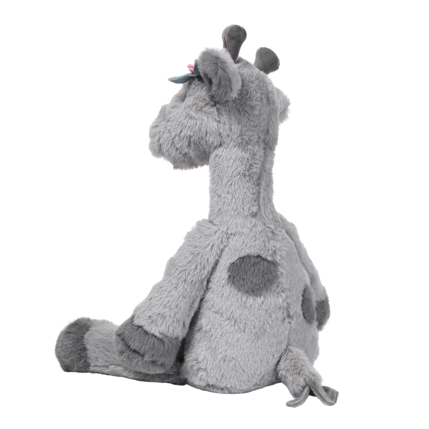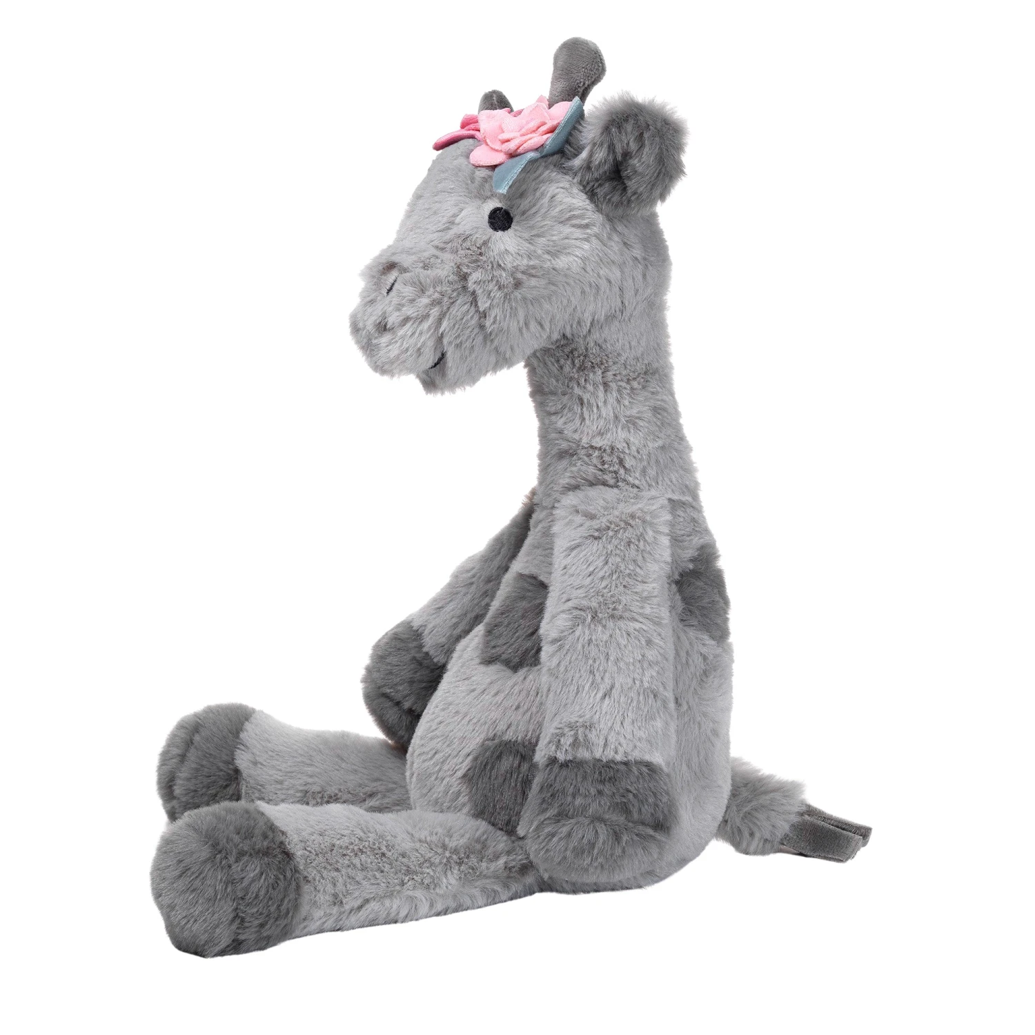 Meet Skylar. She is a super soft and oh so cute plush Giraffe stuffed animal toy. She is made of a light gray luxurious high pile minky with slightly darker spots, feet, and inner ears. Her total body length is 17” and she sits approximately 12” tall. Skylar has 3 sets of 3-dimensional pink flowers on her head that each have 3 layers of petals. Her face is expertly embroidered with no hard pieces, making her baby safe. She will surely be your little one’s favorite plush toy. SKU: 688043G, UPC: 084122012479.