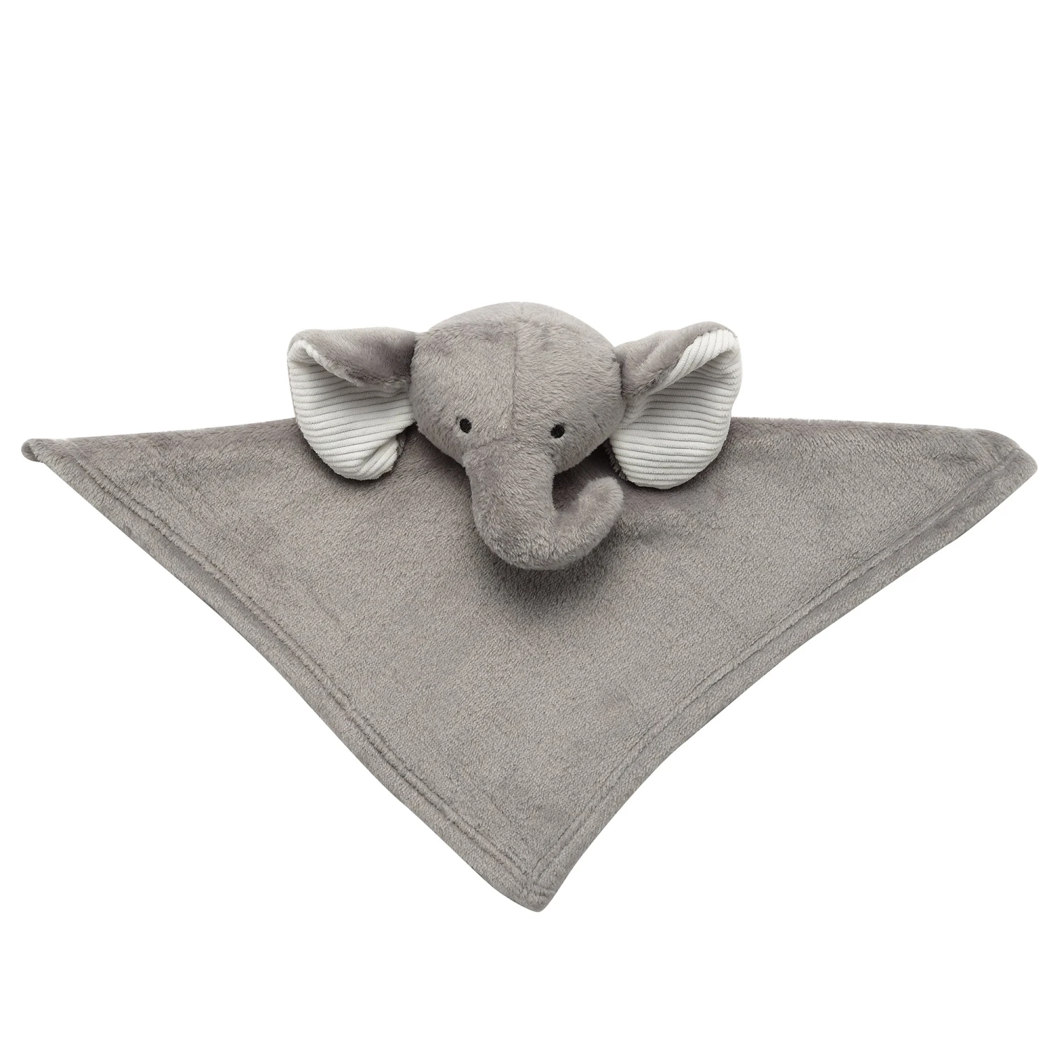 What could be better to comfort your little one than this adorable soft and cozy fleece security blanket / lovey? The gray elephant’s inner ears are made in a textured white ribbed velour, and his eyes are embroidered in black. His cute trunk is 3” long and the blanket portion is 12” X 12” and is made in an ultra-soft luxury fleece. Security blankets (loveys) are cuddly companions and help baby learn to self soothe. SKU: 715051EL, UPC: 084122016163.