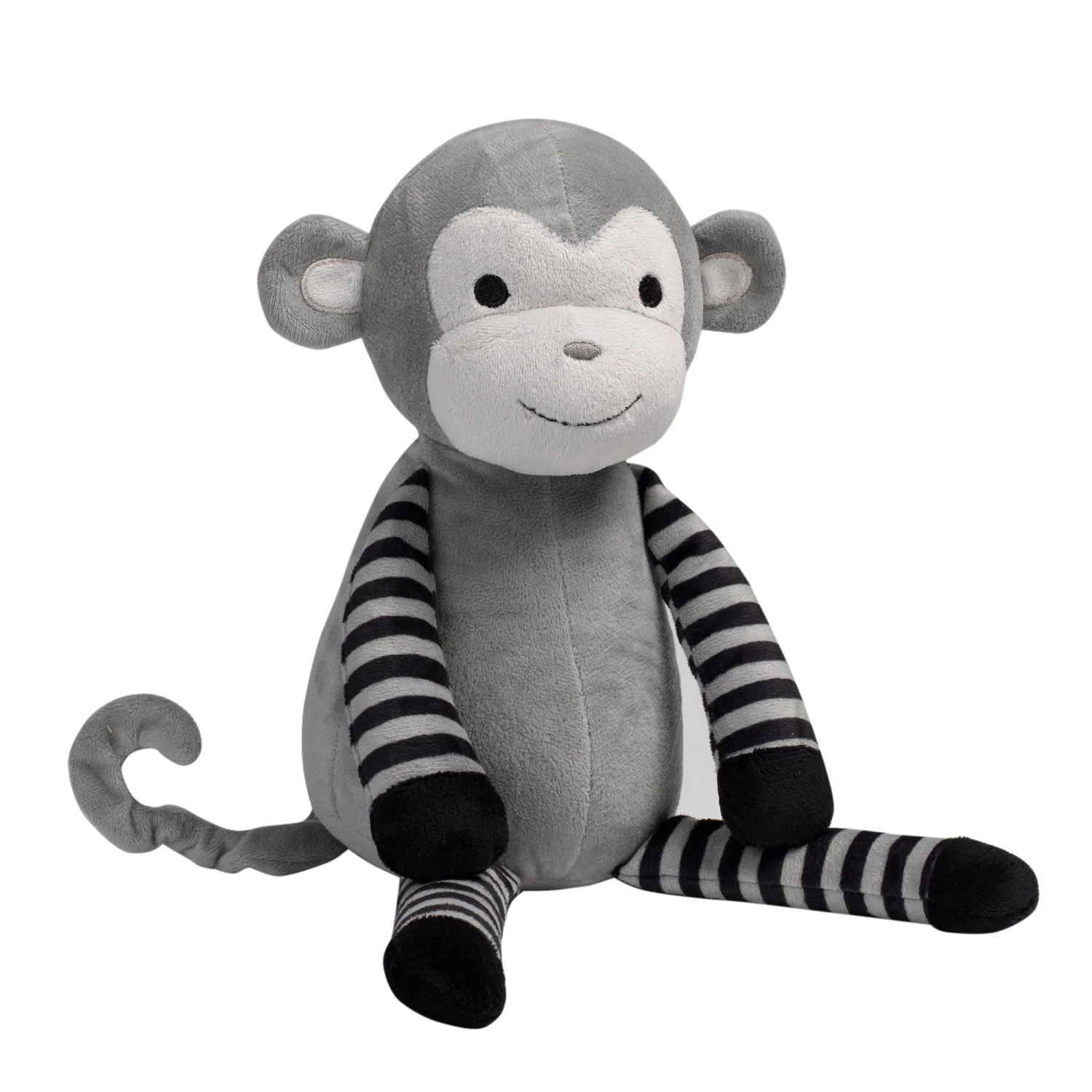 Meet Bingo, a soft and cuddly monkey with gray striped arms and legs. He is sure to become baby’s favorite. Bingo is 9” tall and is a soft polyester. Imported. SKU: 207043M, UPC: 084122207431.