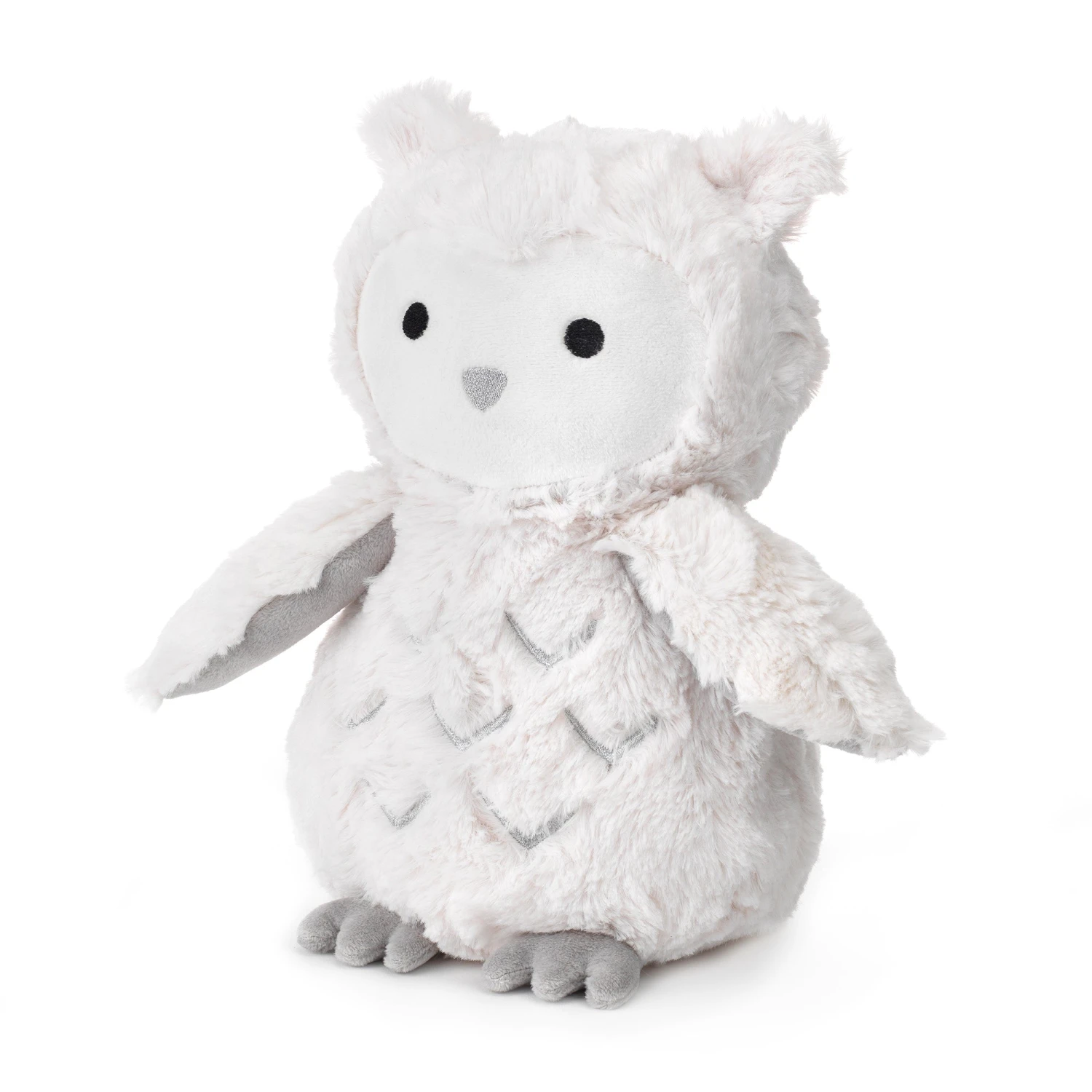 Say hello to Luna. She stands 10” tall and is made of a white soft shaggy faux fur. Under her wings and her cute little feet are a pretty, gray velour. She has silver feather embroidery on her tummy and nose and her eyes are embroidered. She is so soft and cuddly and is sure to be your baby’s favorite. Suitable for all ages. Filled with polyester fibers. Imported. SKU: 740043O, UPC: 084122740433.