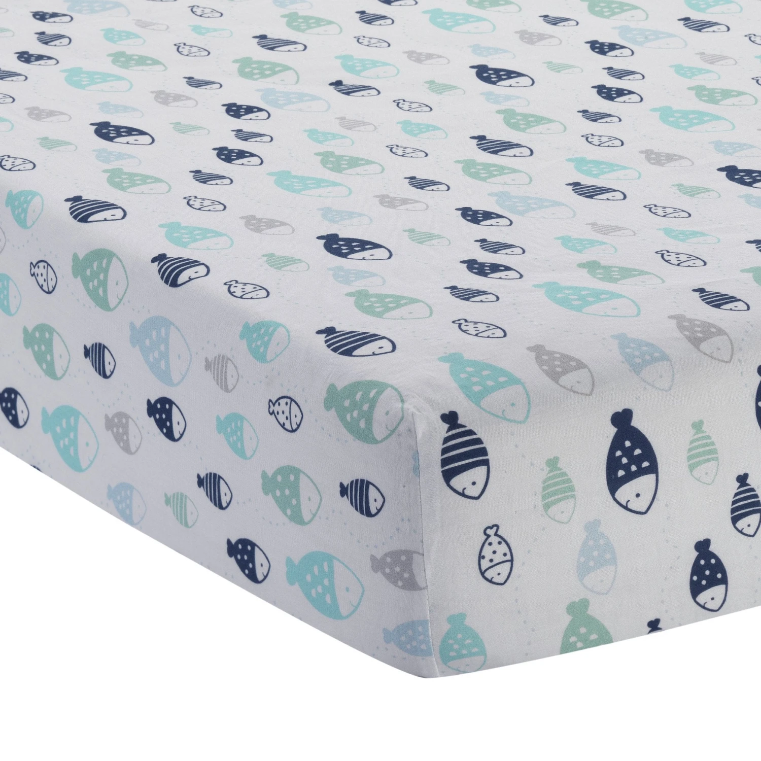 The Oceania 6-piece baby crib bedding set includes: one quilt, two fitted crib sheets, one crib skirt/dust ruffle, one changing pad cover and one diaper stacker. Oceania is a sea life adventure come to life. A patchwork of blues, greens, and gray prints and patterns are the perfect background for this aquatic nursery. The friendly gray octopus has tiny white pom poms on his tentacles. Hoku, everyone’s favorite whale, is a light blue minky fabric and has a dimensional fin. Multicolored scales, dots, and stripes decorate the variety of turtles and fish in this aquatic adventure. The 100% cotton sheets feature a school of fish pattern and a print with sea creatures in blue, turquoise, navy, and sea foam green. The sheets measure 28″ by 52″ and fit a standard size crib mattress. Our dramatic dust ruffle is an engineered print in brush twill on a dark blue ground and features an array of brightly colored fish. The changing pad cover was printed on a super soft minky fabrication in a deep ocean blue color. It features a synchronized colorful school of fish and is 100% polyester. The changing pad cover measures 16″ wide by 32″ long. Complete this bedding set with the blue dot printed diaper stacker with an appliqued fish with multicolored scales. Measures 11″ by 18″ and is a poly cotton blend. Imported SKU: 674006K, UPC: 084122674004.