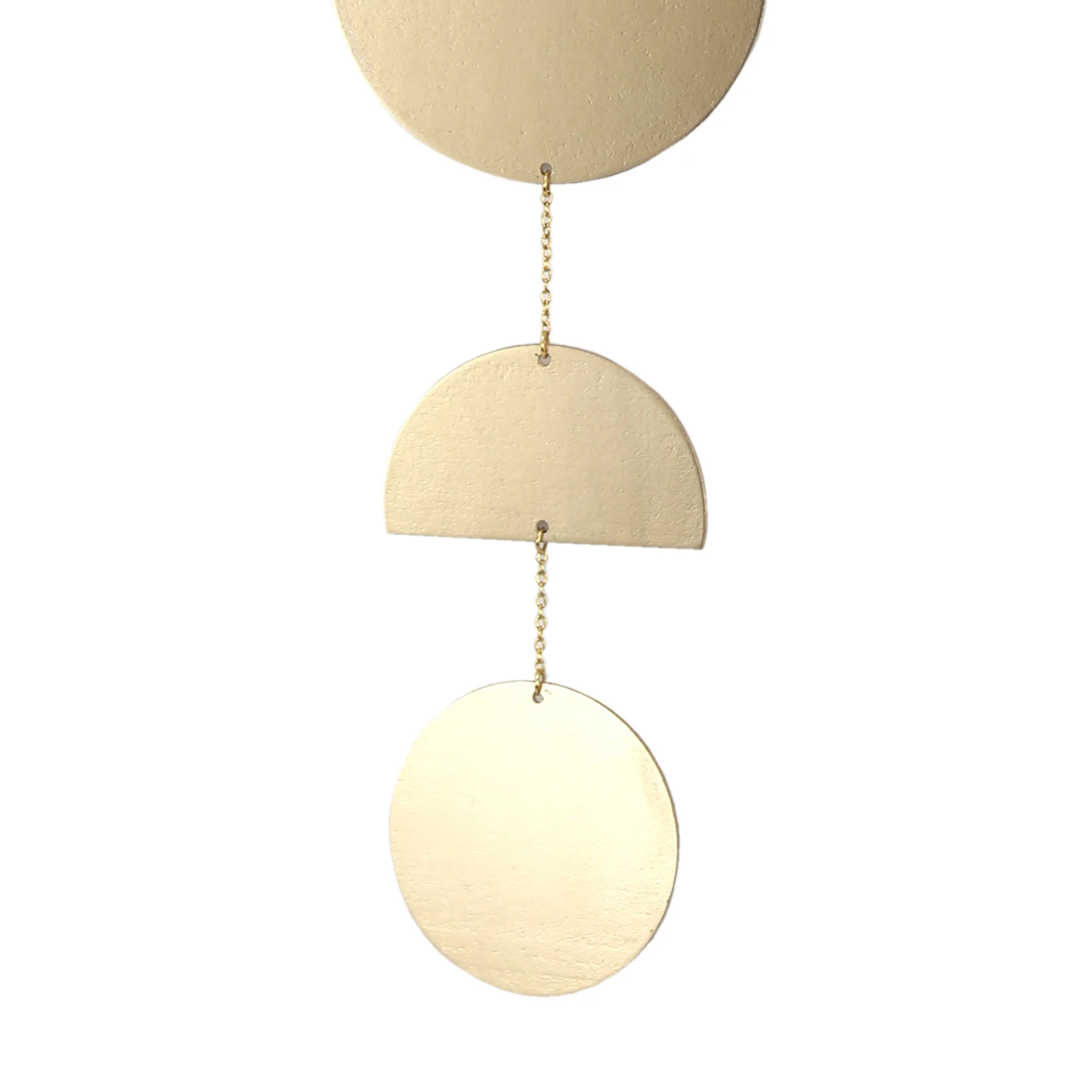 Geometric wooden shapes are painted in trendy gold metallic and connected by a metal chain. There are 3 half circles and 2 full circles. The geo shapes are made of plywood and are perfect to add a designer look to your nursery walls. SKU: 714012GW, UPC: 084122010208.