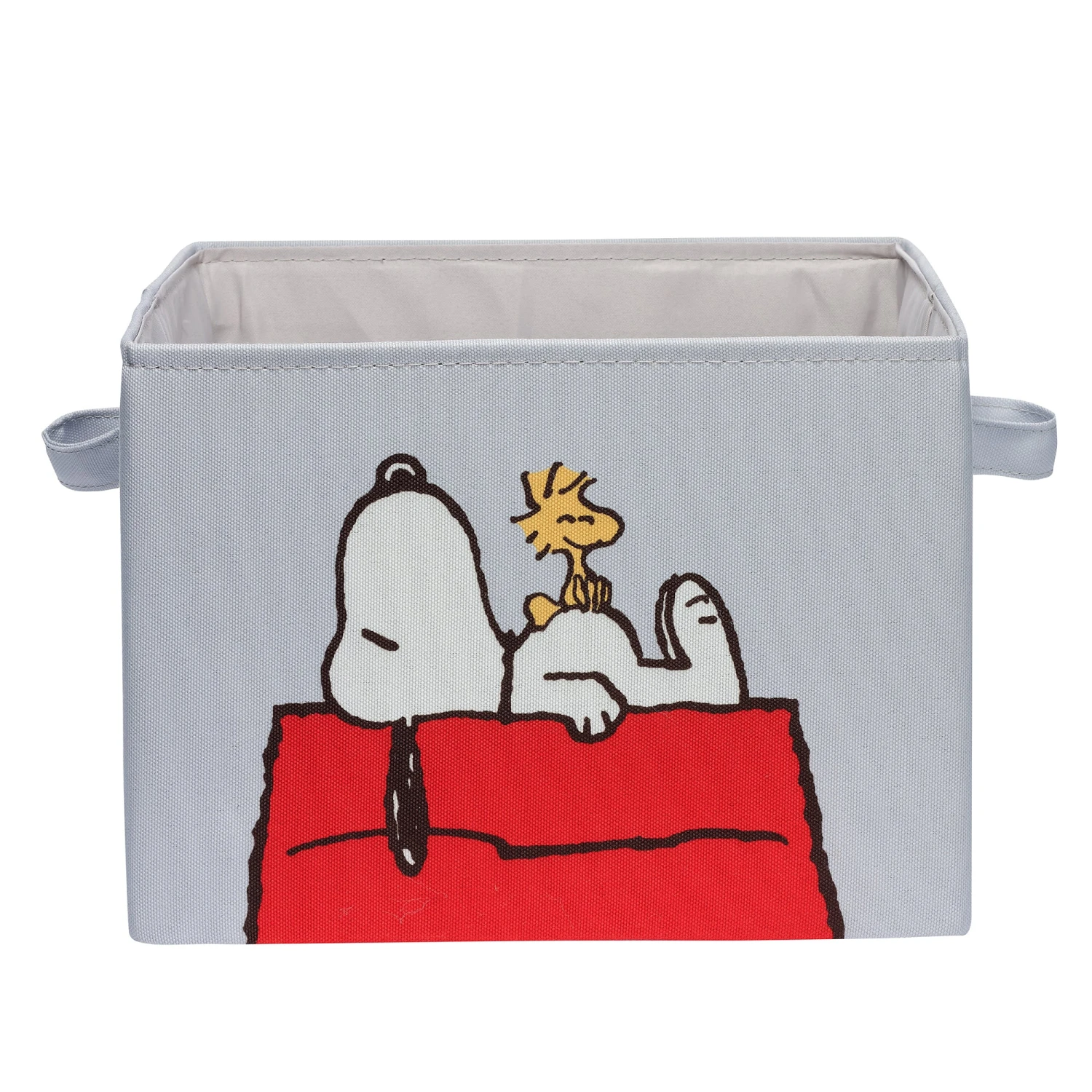 Snoopy to the Rescue! Conquer nursery chaos with this adorable foldable Snoopy storage. Sized at 12 ½” X 11” X 9” this space saving storage basket folds flat when not in use. The front and back features Snoopy lounging on his red doghouse with Woodstock perched comfortably on his tummy. Made of high-quality polyester canvas with two sturdy carrying handles making it easy to transport from room to room. SKU: 771049SN, UPC: 084122018488.