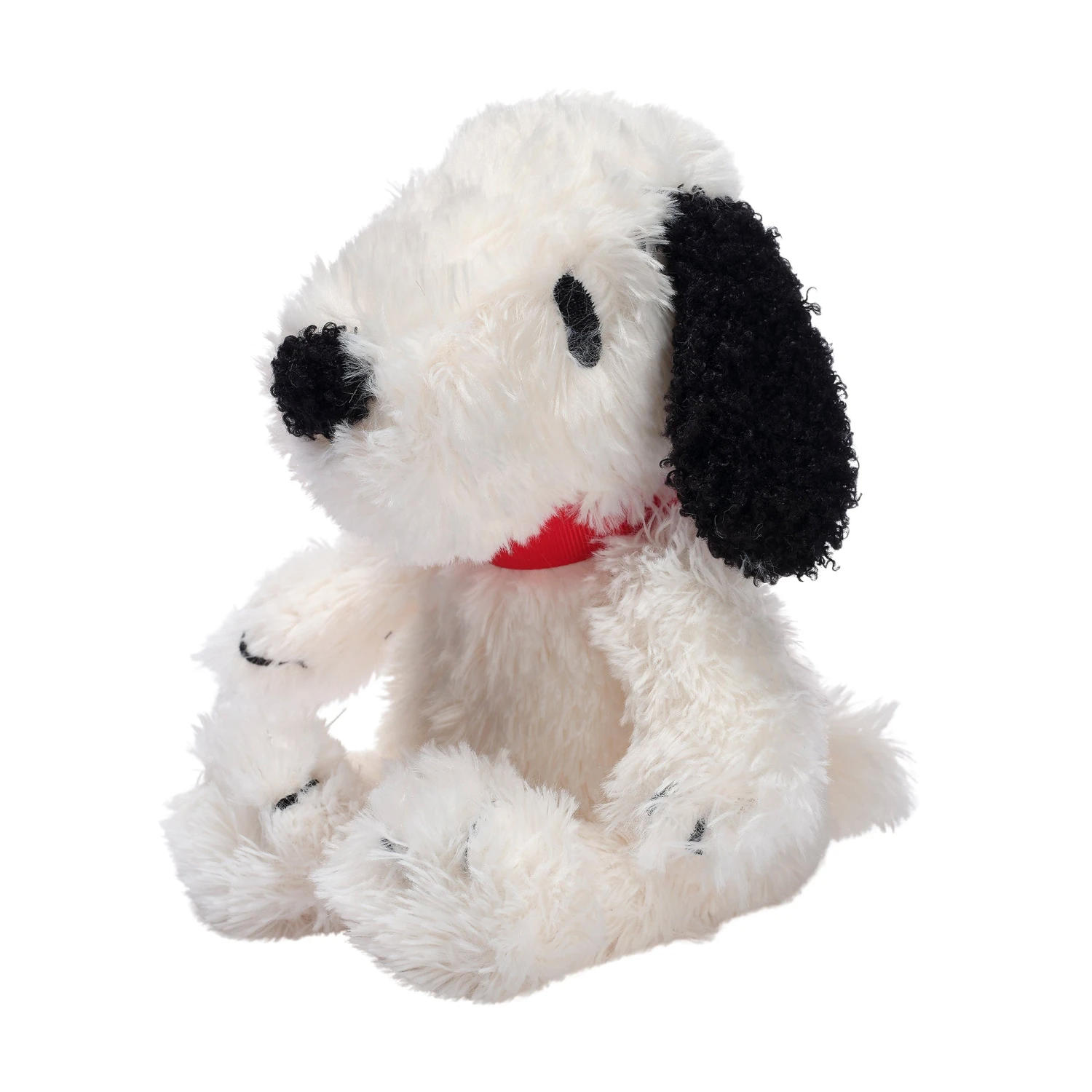 Your little one will love to snuggle up with this shaggy white minky 9” Snoopy plush. His floppy ears, nose, and body spot are made of black textured boucle. His eyes and paws are embroidered in black making him 100% baby safe. Snoopy’s timeless appeal makes him a special companion for your little one to grow with and become a treasured friend. SKU: 255043S, UPC: 084122018747.