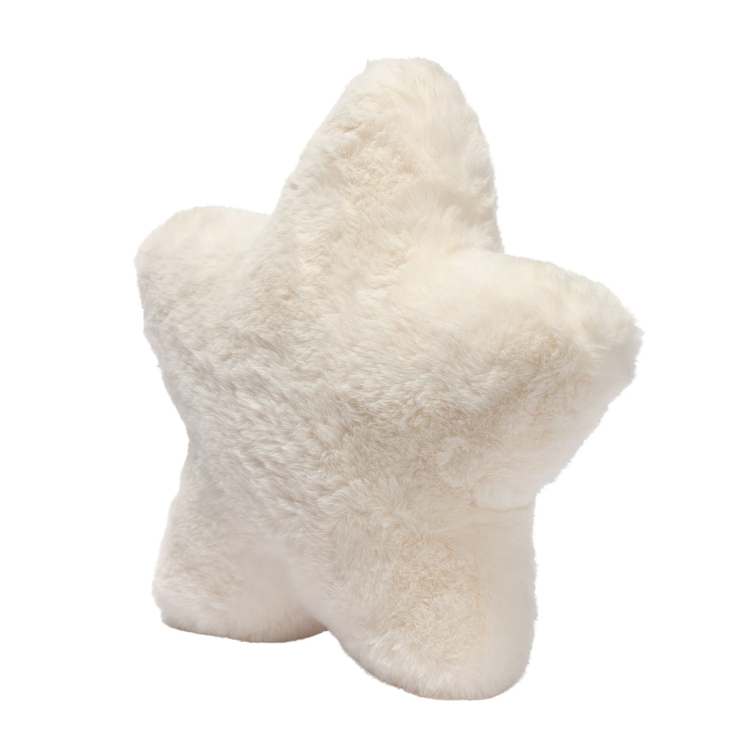 This creamy white star shaped soft faux fur pillow plush is a perfect addition to any designer nursery. It is 12 ½” X 12 ½” X 4” and is filled with 100% polyester fibers. It makes a lovely baby shower gift or welcome home baby gift and adds a touch of whimsy and charm to any nursery or home decor. SKU: 733043S, UPC: 084122018020.