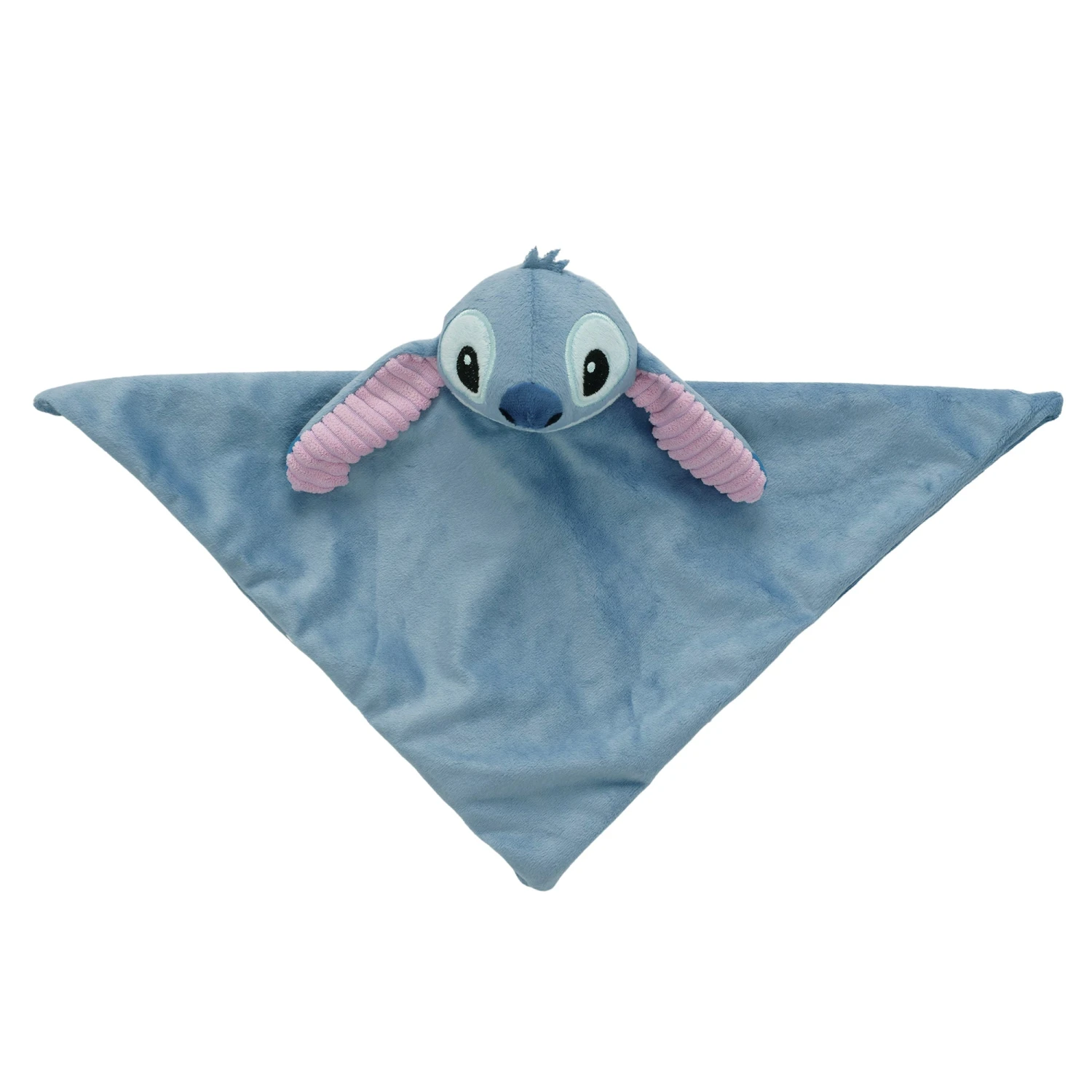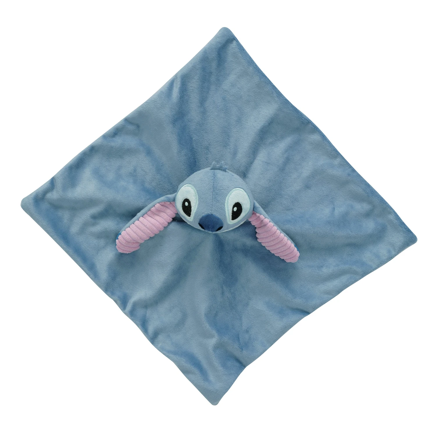 This Disney Stitch soft and cozy security blanket/lovey is the perfect comforting companion for your little one. The security blanket/lovey is made in a double layered velour in a dusty blue color. Stitch is expertly appliqued and embroidered. This adorable little alien makes a great baby shower gift or welcome home baby gift. SKU: 899034, UPC: 084122019805.