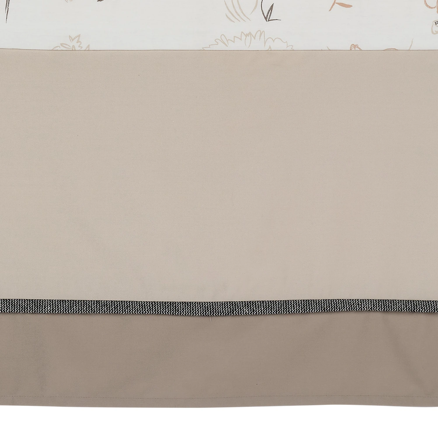 Bring the forest to life with this charming Treetop Fox bedding set which includes one quilt, one breathable 100% cotton fitted crib sheet and one decorative crib skirt. The quilt features Buddy, a curious rust color fox, made in soft boucle, climbing between two large applique trees. An inspiring message is embroidered on the tree trunk which says “From little seeds grow mighty trees.” The soothing color palette with soft textures and playful animals add the finishing touch. The breathable 100% cotton fitted crib sheet depicts a charming forest scene with playful animals and plants. The crib skirt adds the finishing touch to your child’s crib and was designed in a soft neutral color story with a mini woven black and white inset. SKU: 741003V, UPC: 084122018495.