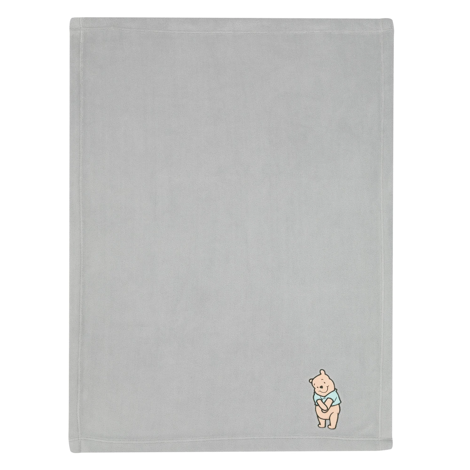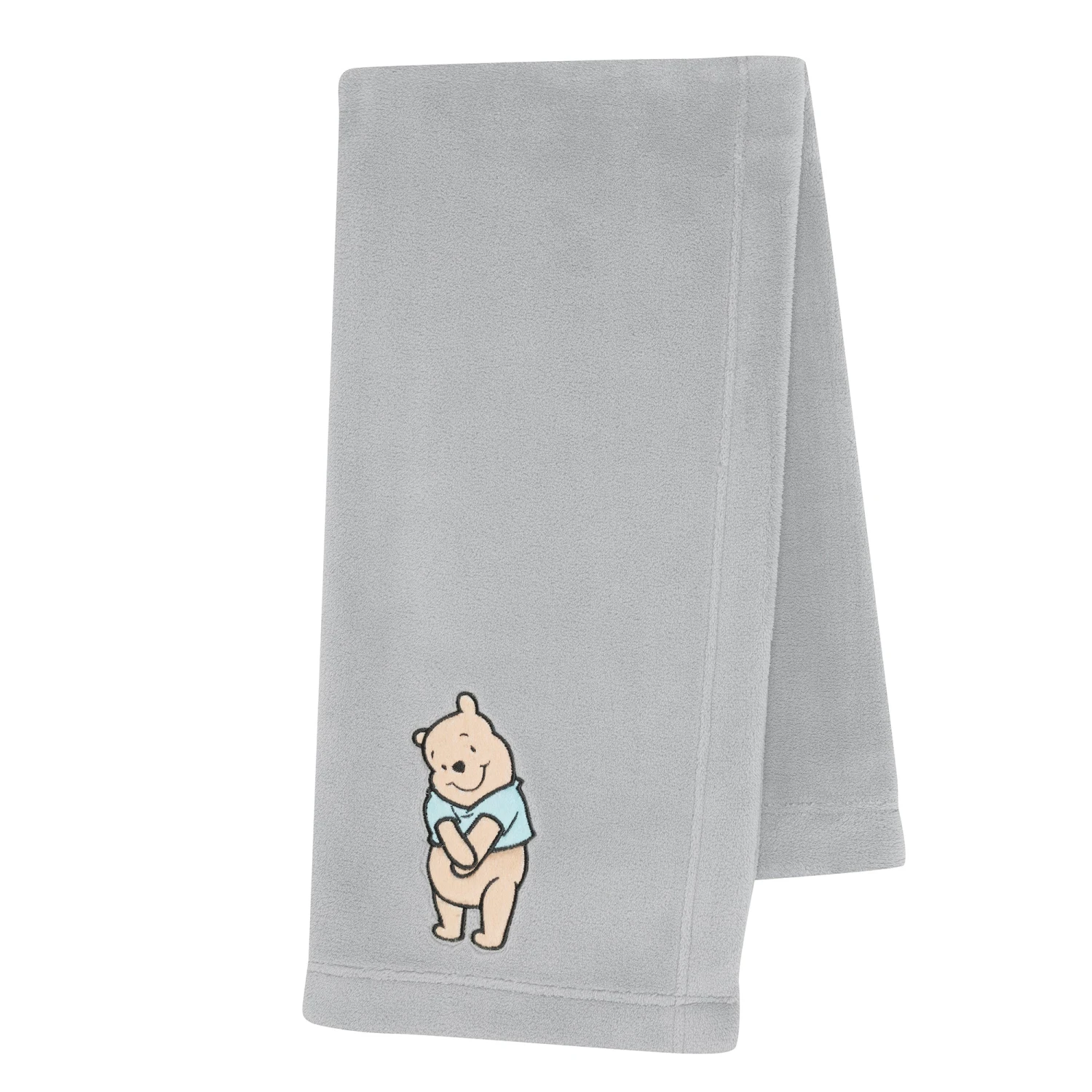 Your little one will love to cuddle up with this super soft gray Winnie the Pooh coral fleece blanket. It is 30” X 40” and is the perfect size for going to the park, running errands, or going to Grandma’s house. It features Winnie the Pooh with his hands shyly covering his belly summary and a sweet smile on his face. It is machine washable for easy care. It makes a great baby shower gift or welcome home baby gift. SKU: 782034, UPC: 084122012844.