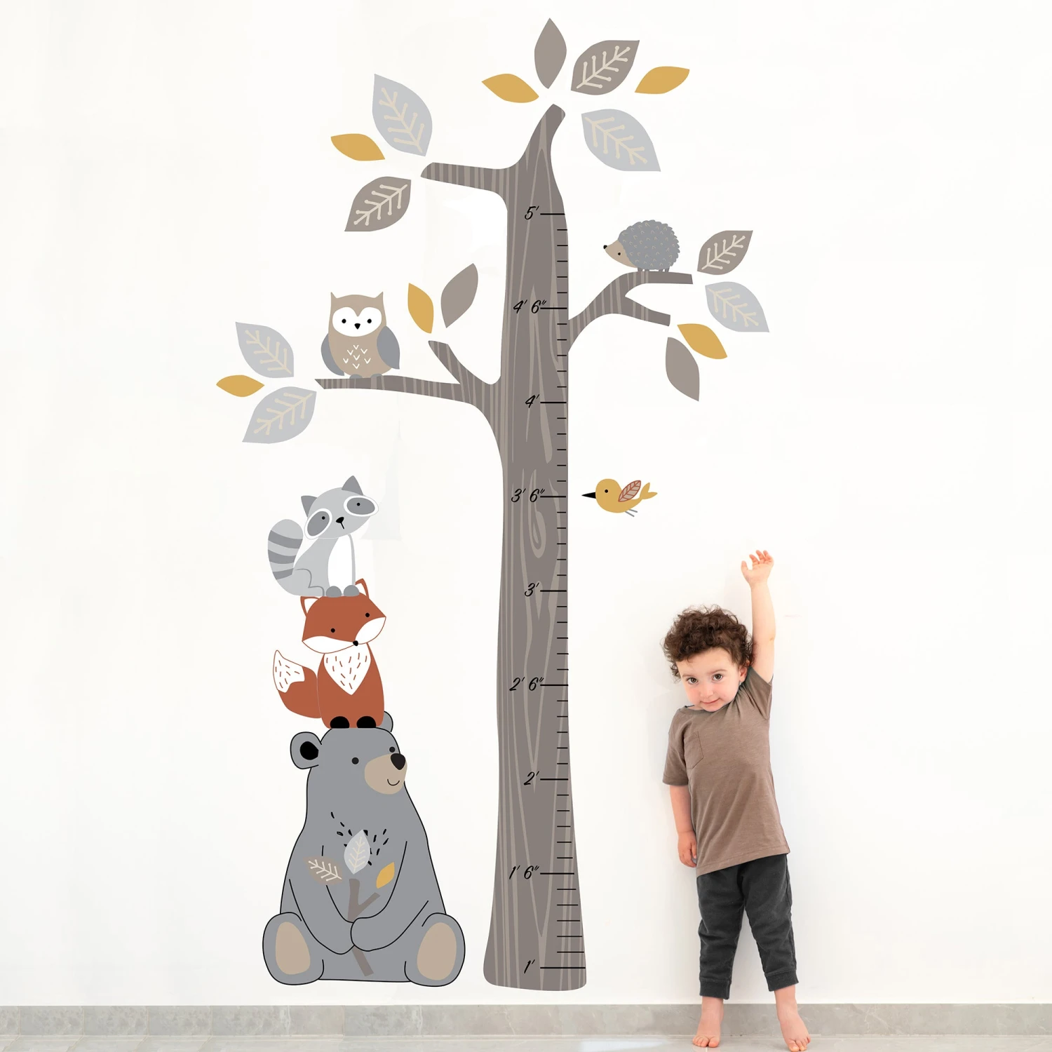 Have fun and keep track of your little one’s growth with this adorable Woodland Forest Growth Chart. The ruler was cleverly designed as part of the tree trunk alongside some of our favorite woodland animals. There is a curious gray bear, a mischievous fox, and a cute little raccoon next to the colorful tree. Sitting comfortably in the tree is a wise owl and a sweet little hedgehog. This peel and stick growth chart will measure up to five feet and has easy to read measurements along the way. Works best on smooth walls, is easy to apply and will not harm your walls when removed. SKU: 727048W, UPC: 084122015630.